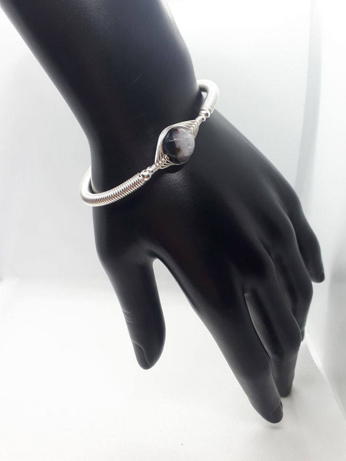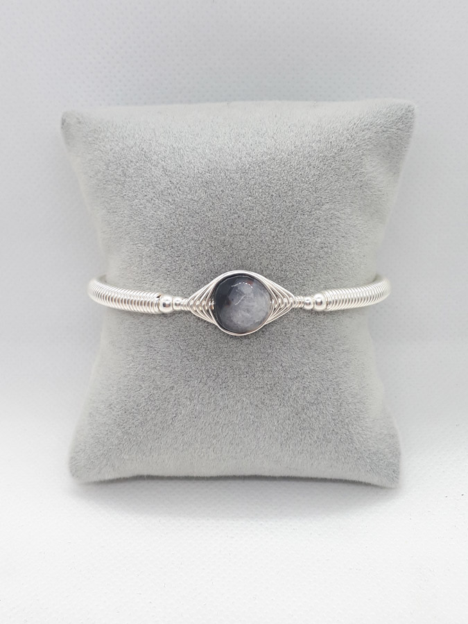 Ručno izrađena posrebrena narukvica galvanizirana srebrom sa ahatom.