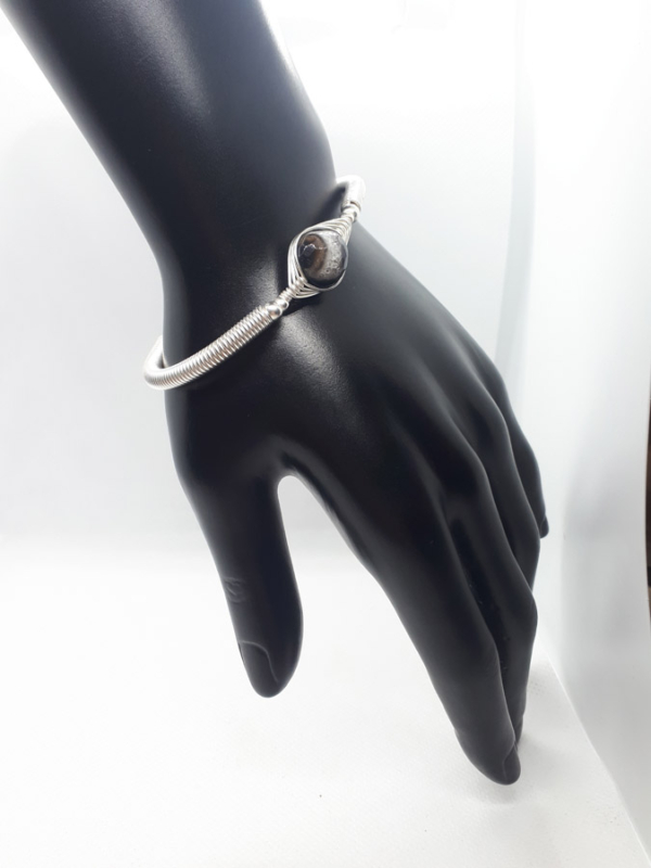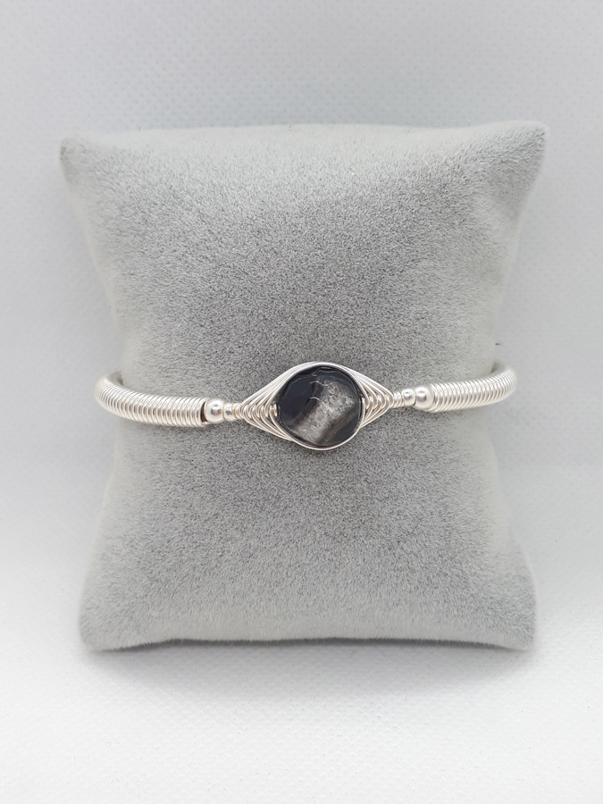 Ručno izrađena posrebrena narukvica galvanizirana srebrom sa ahatom.