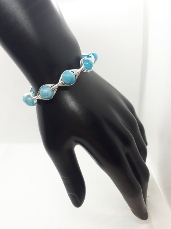 Ručno izrađena posrebrena narukvica galvanizirana srebrom sa ahatom.