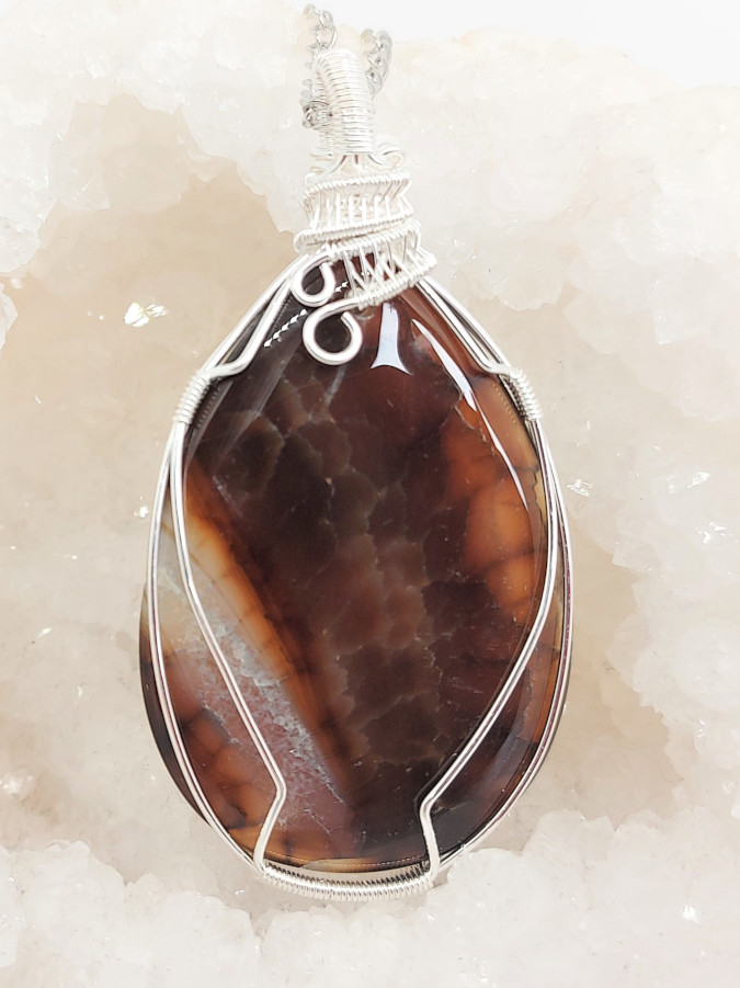 Jedinstveni ahat veličine 7,0×3,5 cm unikatno ukrašen žicom
