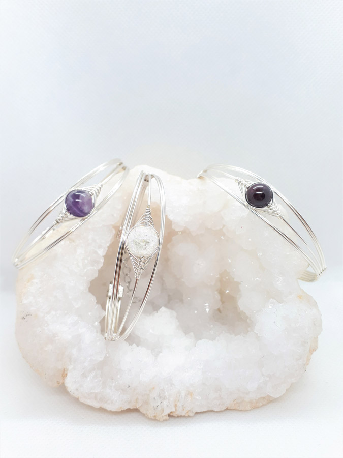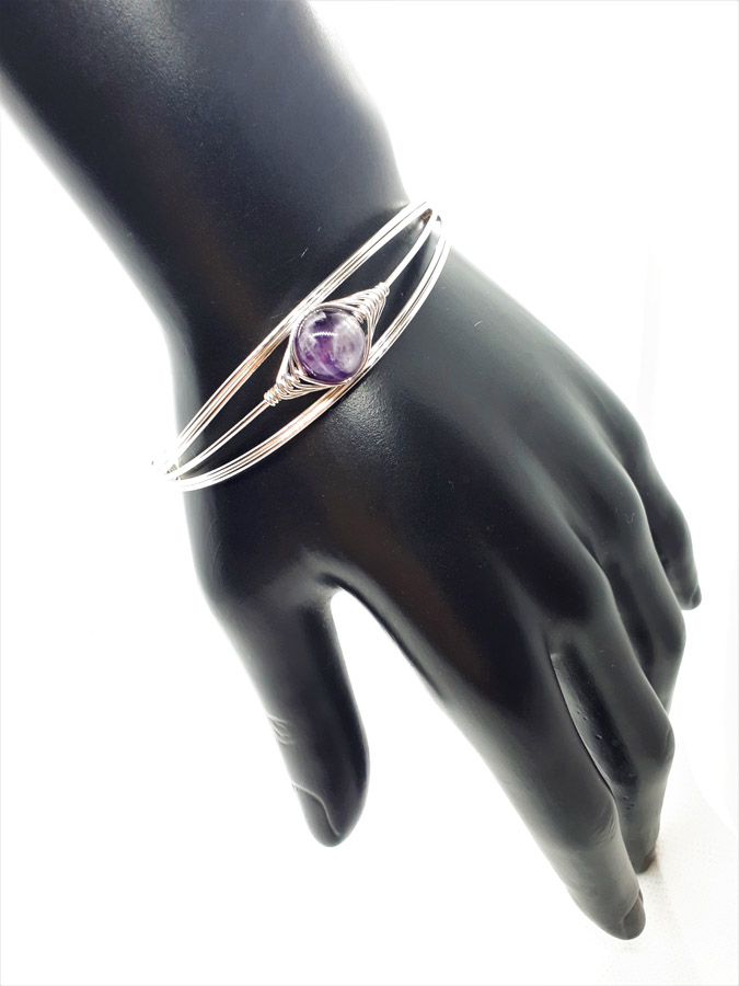 Ručno izrađena posrebrena narukvica galvanizirana srebrom sa ametistom.