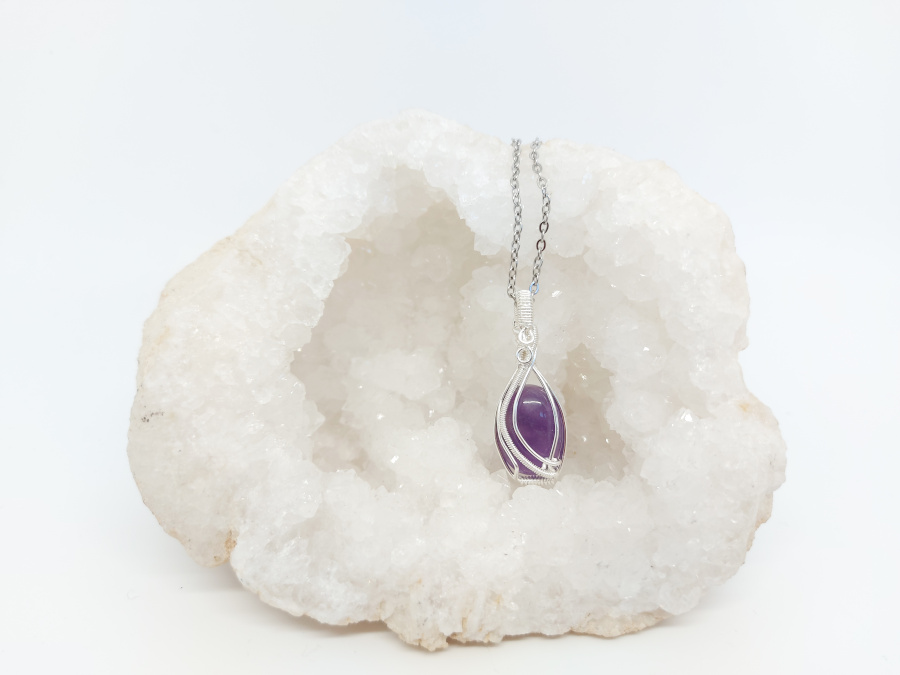 Jedinstveni ametist veličine 4,0×1,5 cm unikatno ukrašen žicom