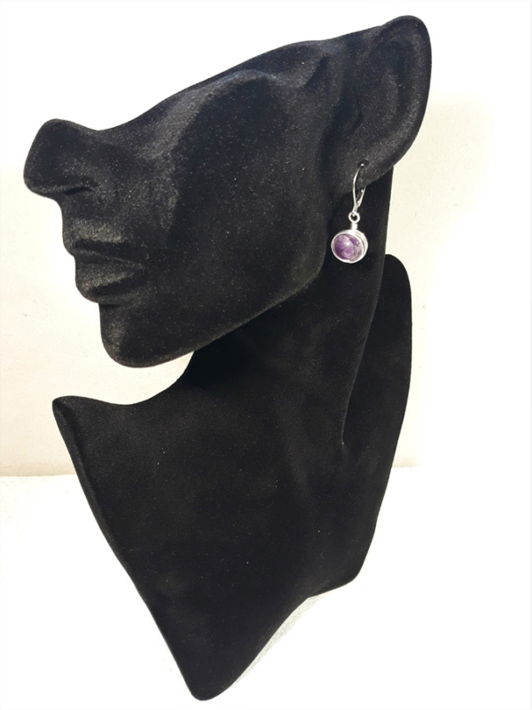 Opis: Ručno izrađene posrebrene naušnice galvanizirane srebrom sa ametistom veličine kamena 1cm i udicom od nehrđajućeg čelika.
