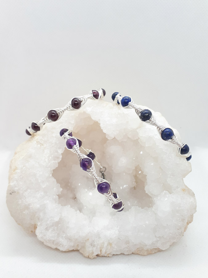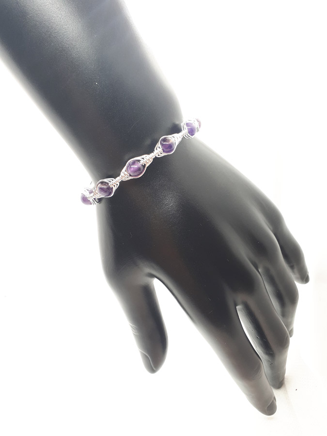 Ručno izrađena posrebrena narukvica galvanizirana srebrom sa ametistom.