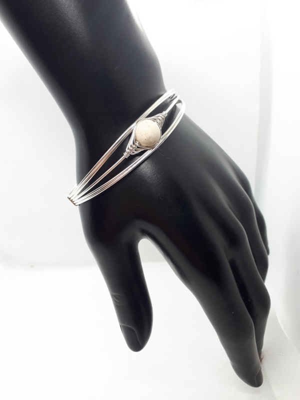 Ručno izrađena posrebrena narukvica galvanizirana srebrom sa bračkim kamenom.