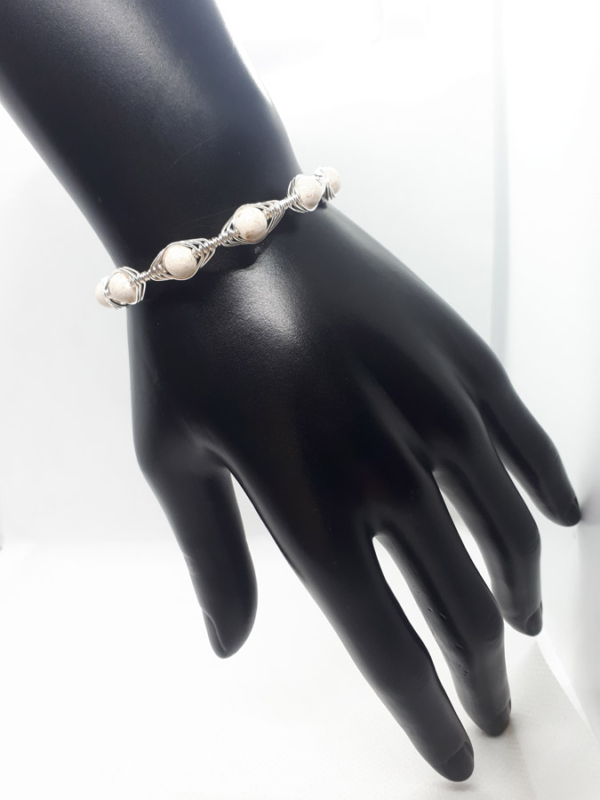 Ručno izrađena posrebrena narukvica galvanizirana srebrom s bračkim kamenom.