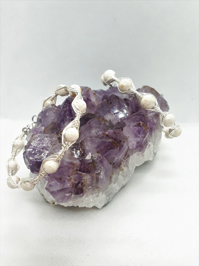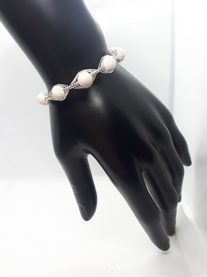 Ručno izrađena posrebrena narukvica galvanizirana srebrom s bračkim kamenom.