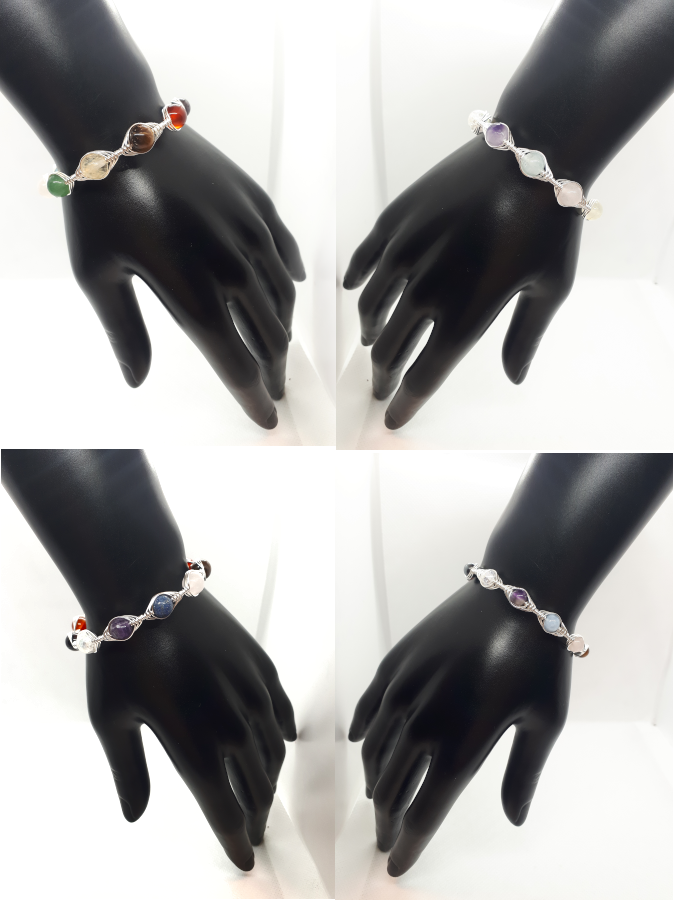 Ručno izrađena posrebrena narukvica galvanizirana srebrom sa raznim kamenima.