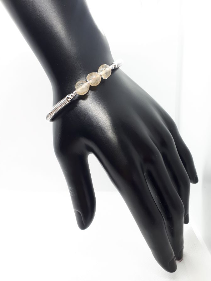 Ručno izrađena posrebrena narukvica galvanizirana srebrom sa citrinom.