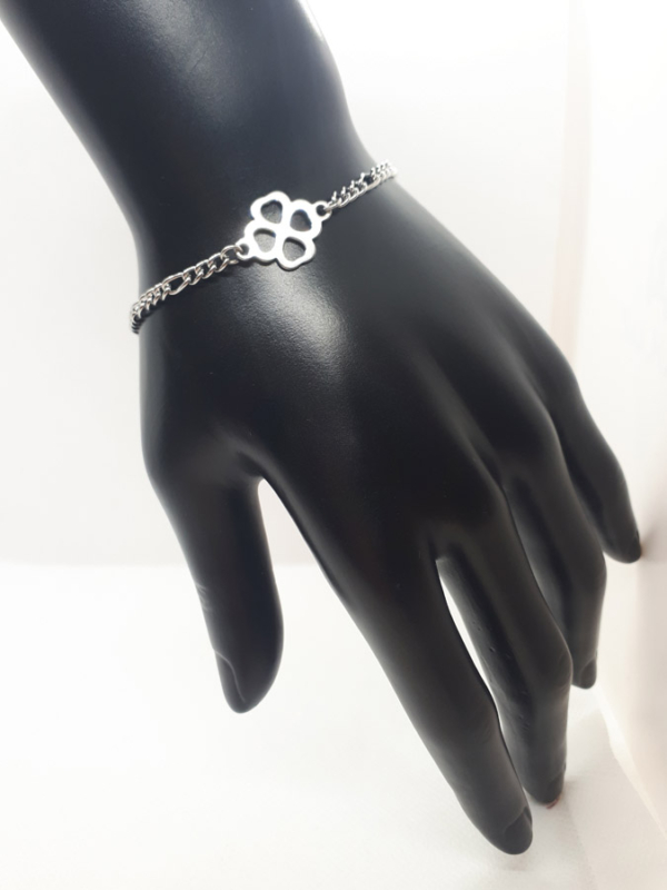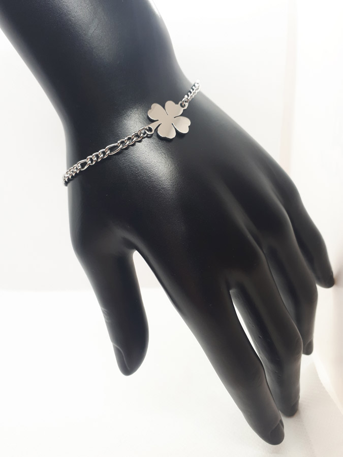 Ručno izrađena narukvica od nehrđajučeg čelika sa simbolom djeteline. Za pregled svih vrsta i kombinacija odaberite opciju iz padajućeg izbornika.