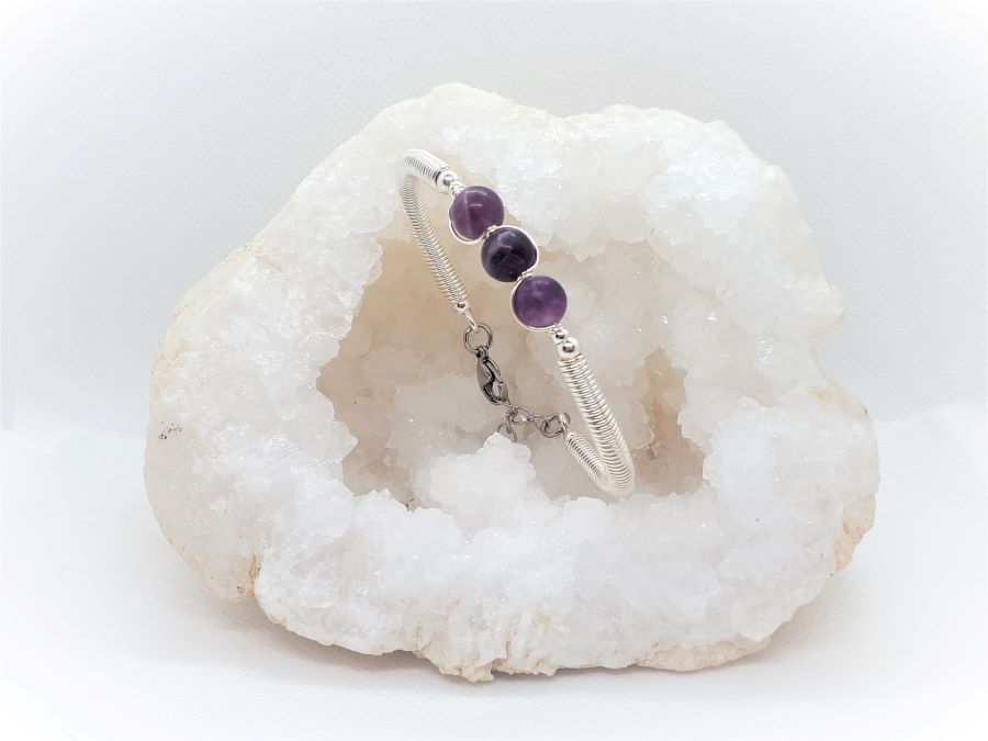 Ručno izrađena posrebrena narukvica galvanizirana srebrom s fluoritom.