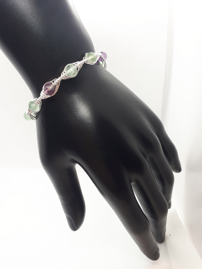 Ručno izrađena posrebrena narukvica galvanizirana srebrom sa fluoritom.