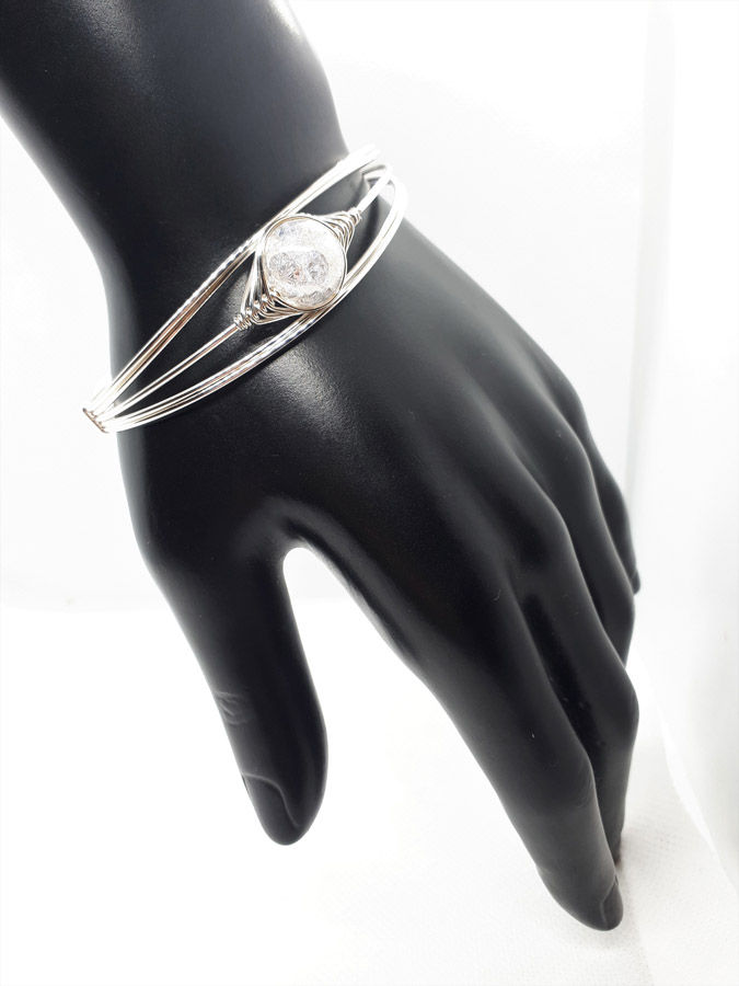 Ručno izrađena posrebrena narukvica galvanizirana srebrom sa gorskim kristalom.