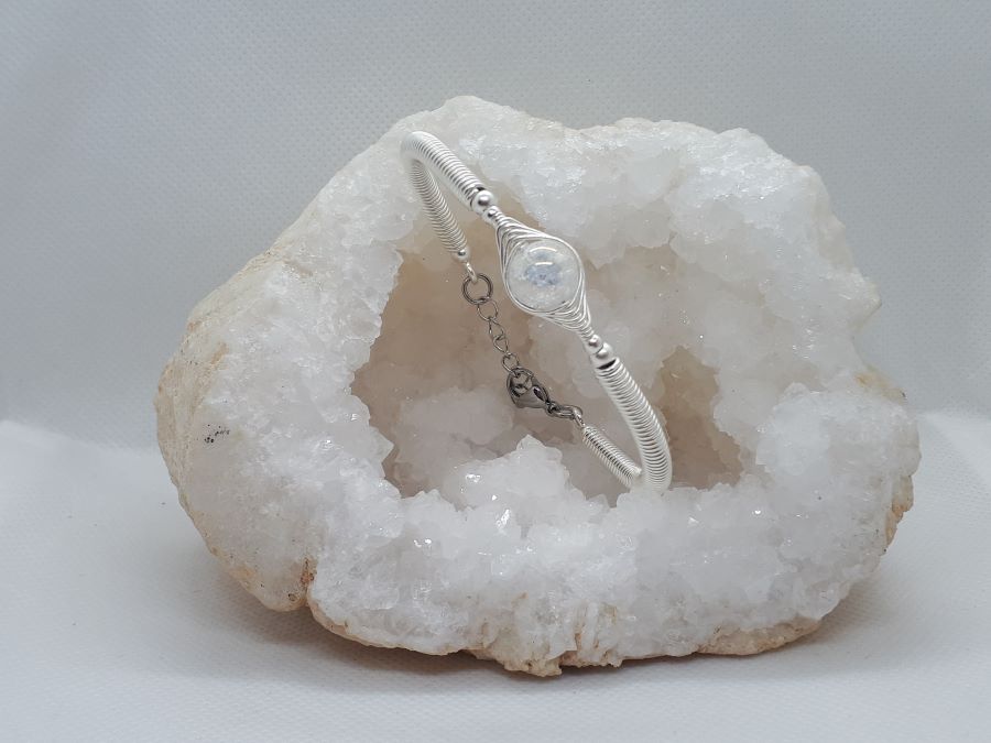 Ručno izrađena posrebrena narukvica galvanizirana srebrom s gorskim kristalom.