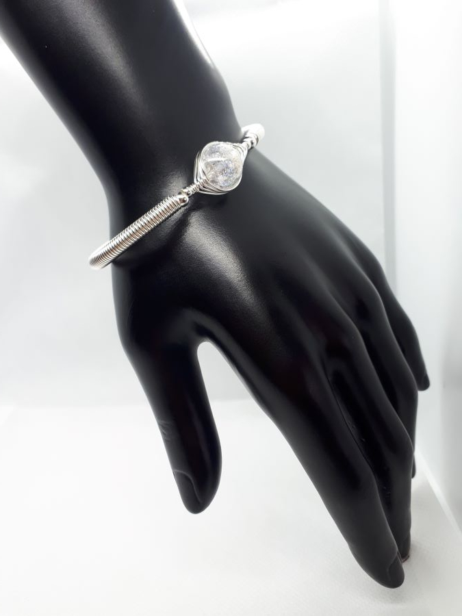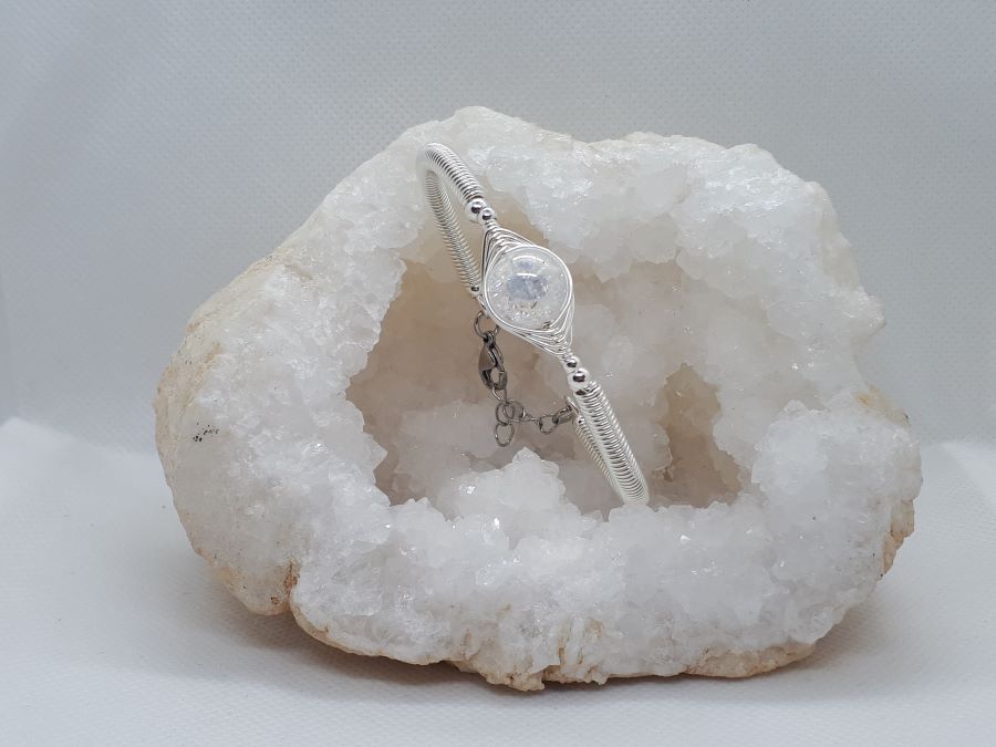 Ručno izrađena posrebrena narukvica galvanizirana srebrom s gorskim kristalom.