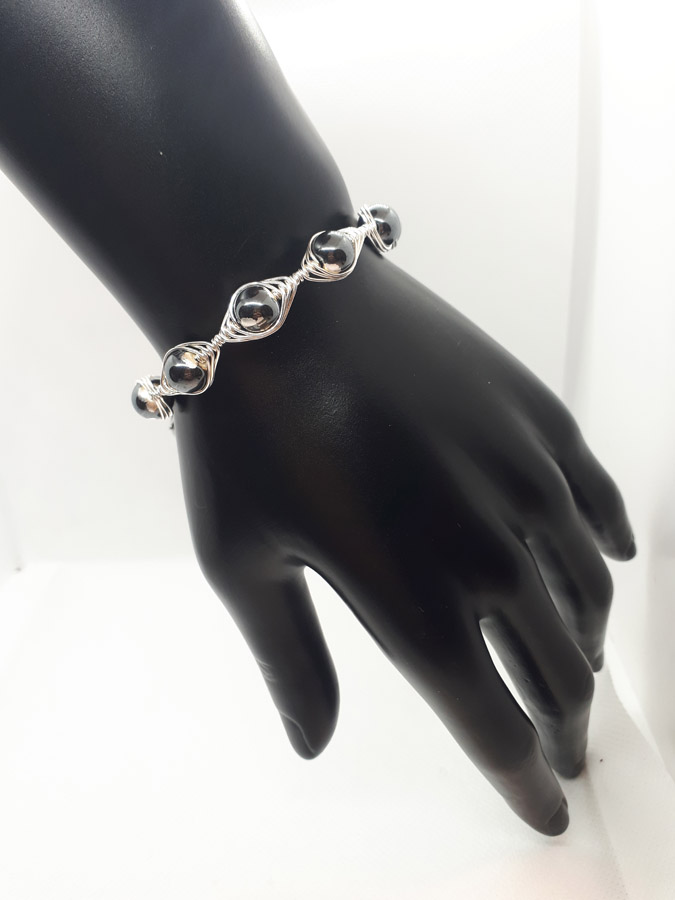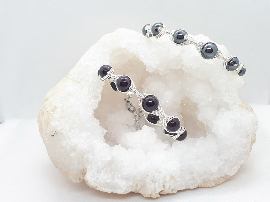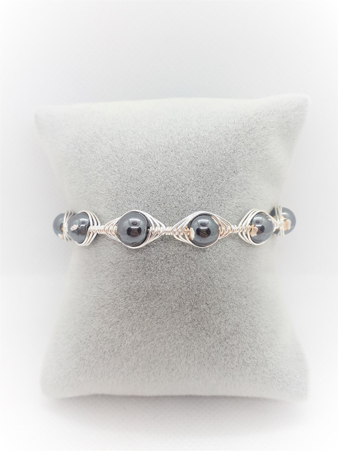 Ručno izrađena posrebrena narukvica galvanizirana srebrom sa hematitom.