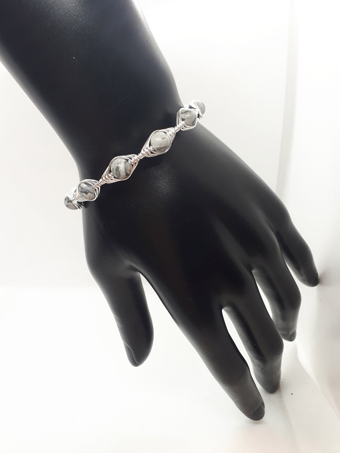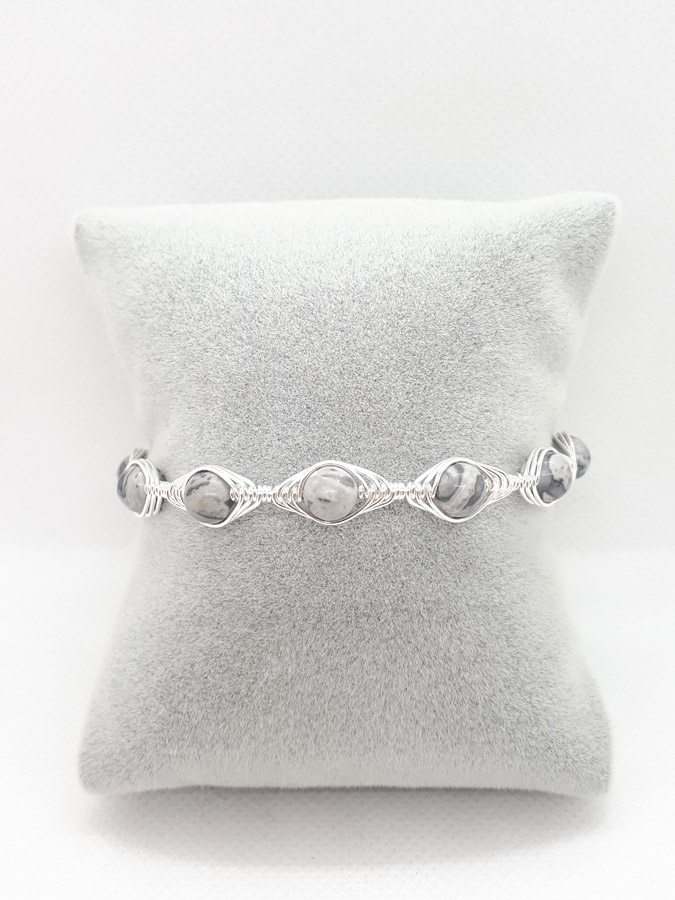 Ručno izrađena posrebrena narukvica galvanizirana srebrom sa jaspisom.