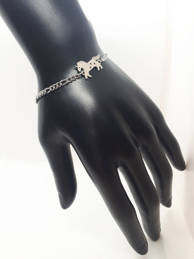 Ručno izrađena narukvica od nehrđajučeg čelika sa simbolom jednoroga.