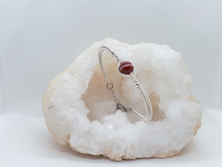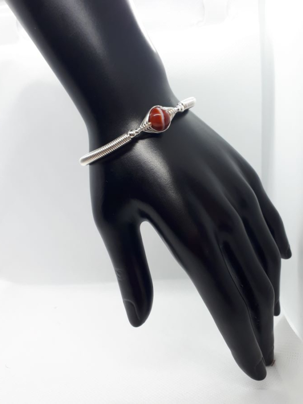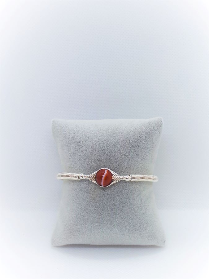 Ručno izrađena posrebrena narukvica galvanizirana srebrom s karneolom.
