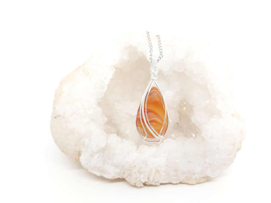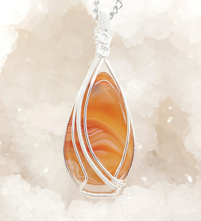 Jedinstveni karneol veličine 5,5×2,0 cm unikatno ukrašen žicom