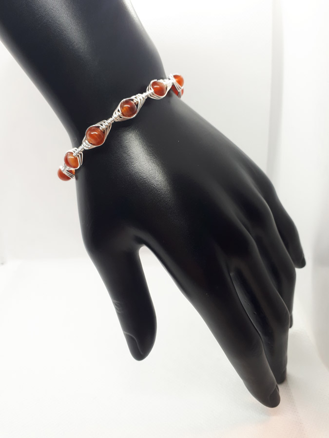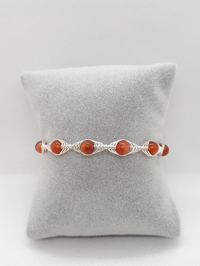 Ručno izrađena posrebrena narukvica galvanizirana srebrom sa karneolom.