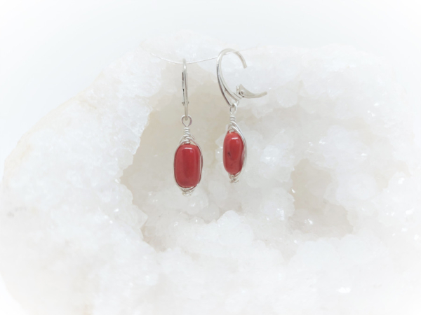 Ručno izrađene srebrne naušnice sa poludragim kamenom veličine 3,0×1,0cm.