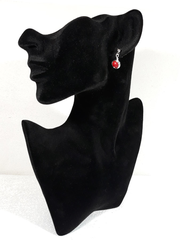 Ručno izrađene posrebrene naušnice galvanizirana srebrom sa koraljem veličine kamena 0,8cm i udicom od nehrđajućeg čelika.