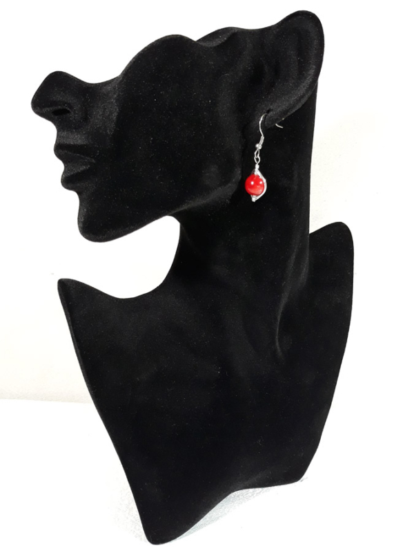 Opis: Ručno izrađene posrebrene naušnice galvanizirane srebrom sa tropskim koraljem veličine kamena 1cm i udicom od nehrđajućeg čelika.