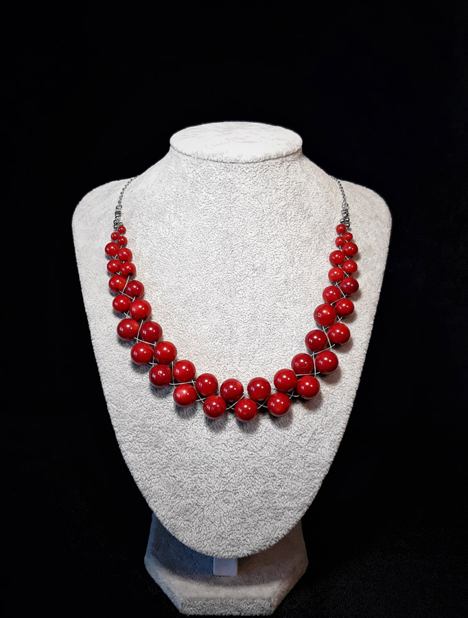 Ručno pletena ogrlica sa koraljima.