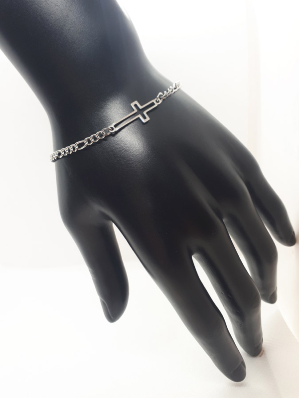 Ručno izrađena narukvica od nehrđajučeg čelika sa simbolom križa.
