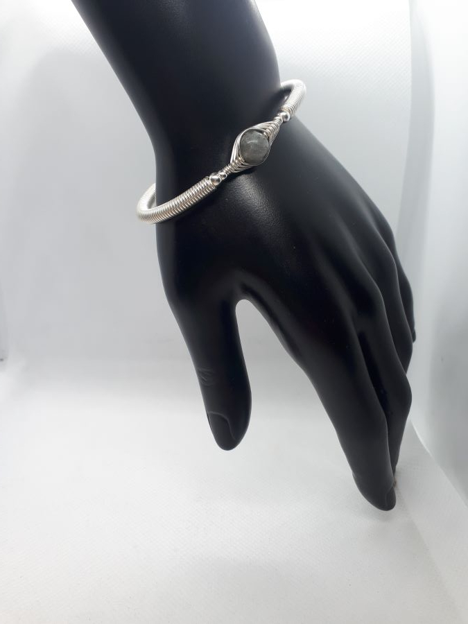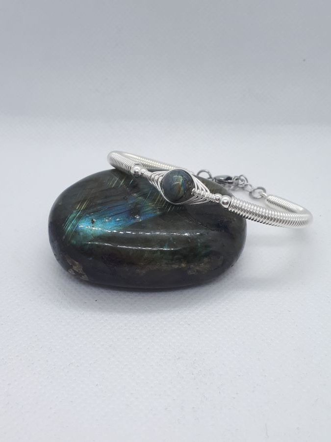 Ručno izrađena posrebrena narukvica galvanizirana srebrom s labradoritom.