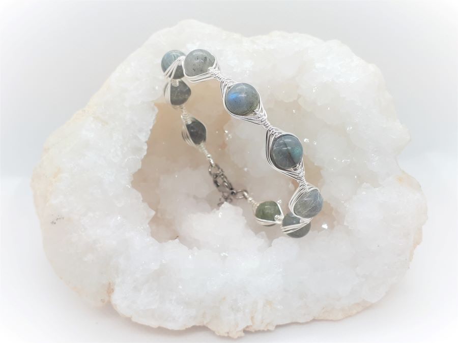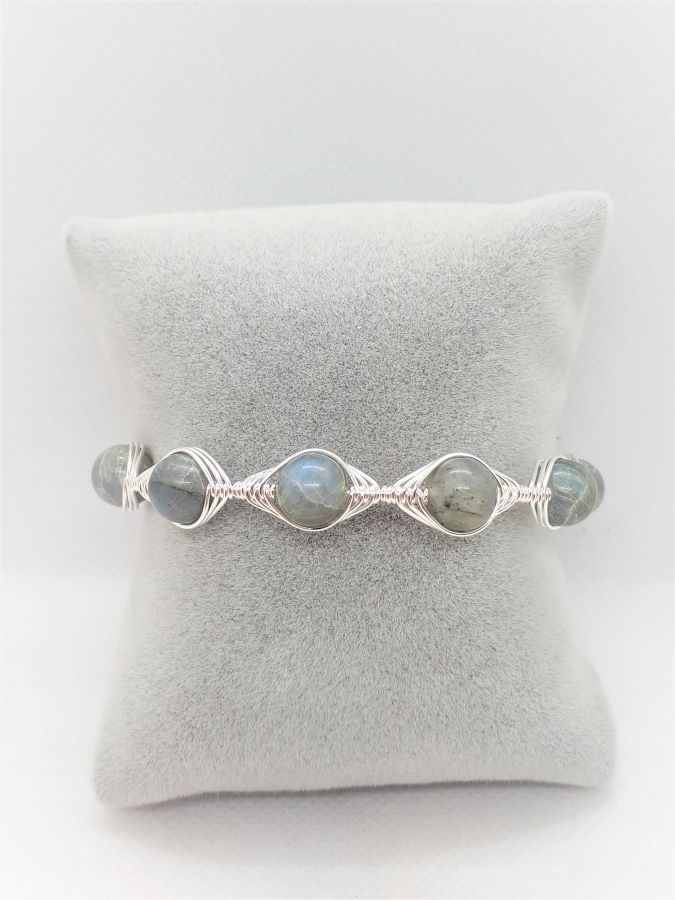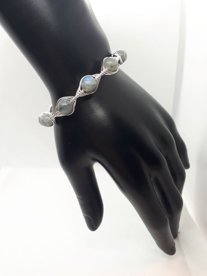 Ručno izrađena posrebrena narukvica galvanizirana srebrom sa labradoritom.