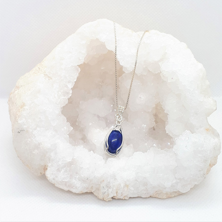 Lapis lazuli veličine 3,0×1,0 cm pleten srebrnom žicom