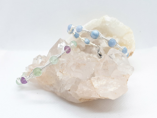 Ručno izrađena posrebrena narukvica galvanizirana srebrom sa ahatom.