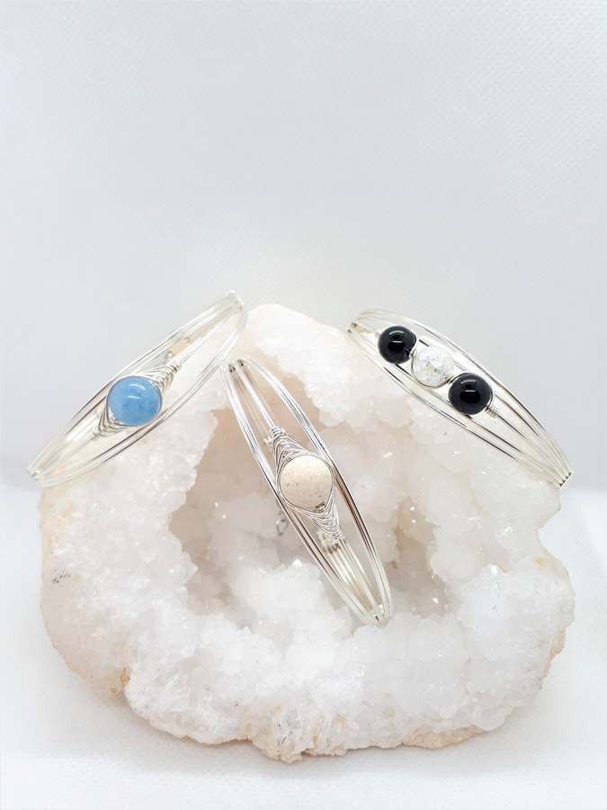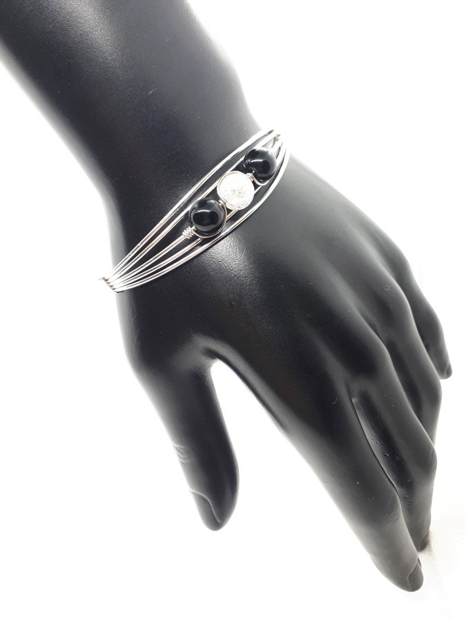 Ručno izrađena posrebrena narukvica galvanizirana srebrom sa oniksom i gorskim kristalom.