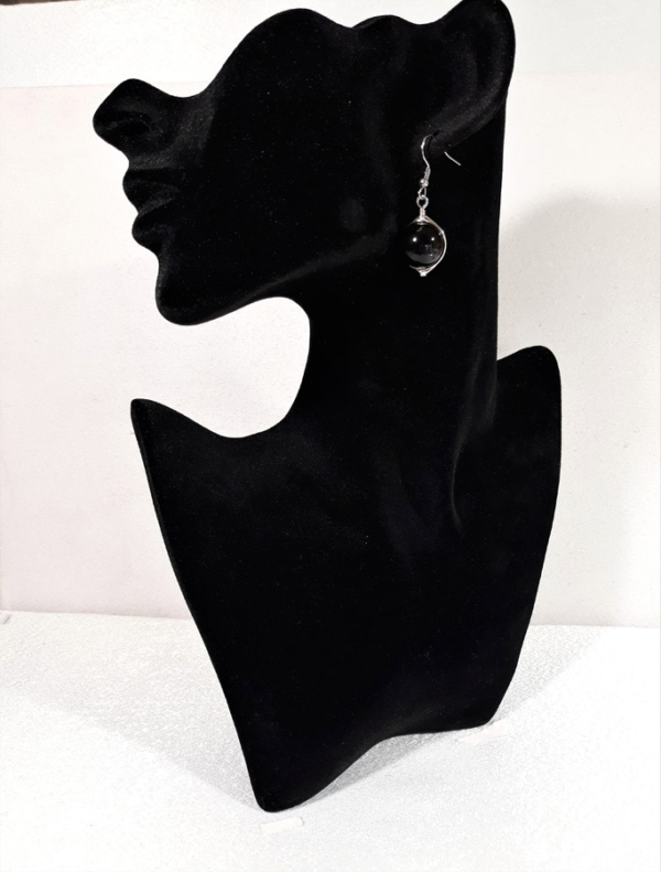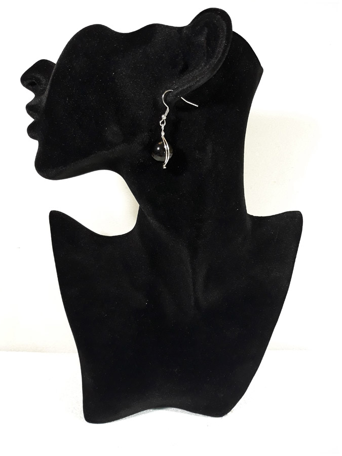 Opis: Ručno izrađene posrebrene naušnice galvanizirane srebrom sa oniksom veličine kamena 1,2cm i udicom od nehrđajućeg čelika.