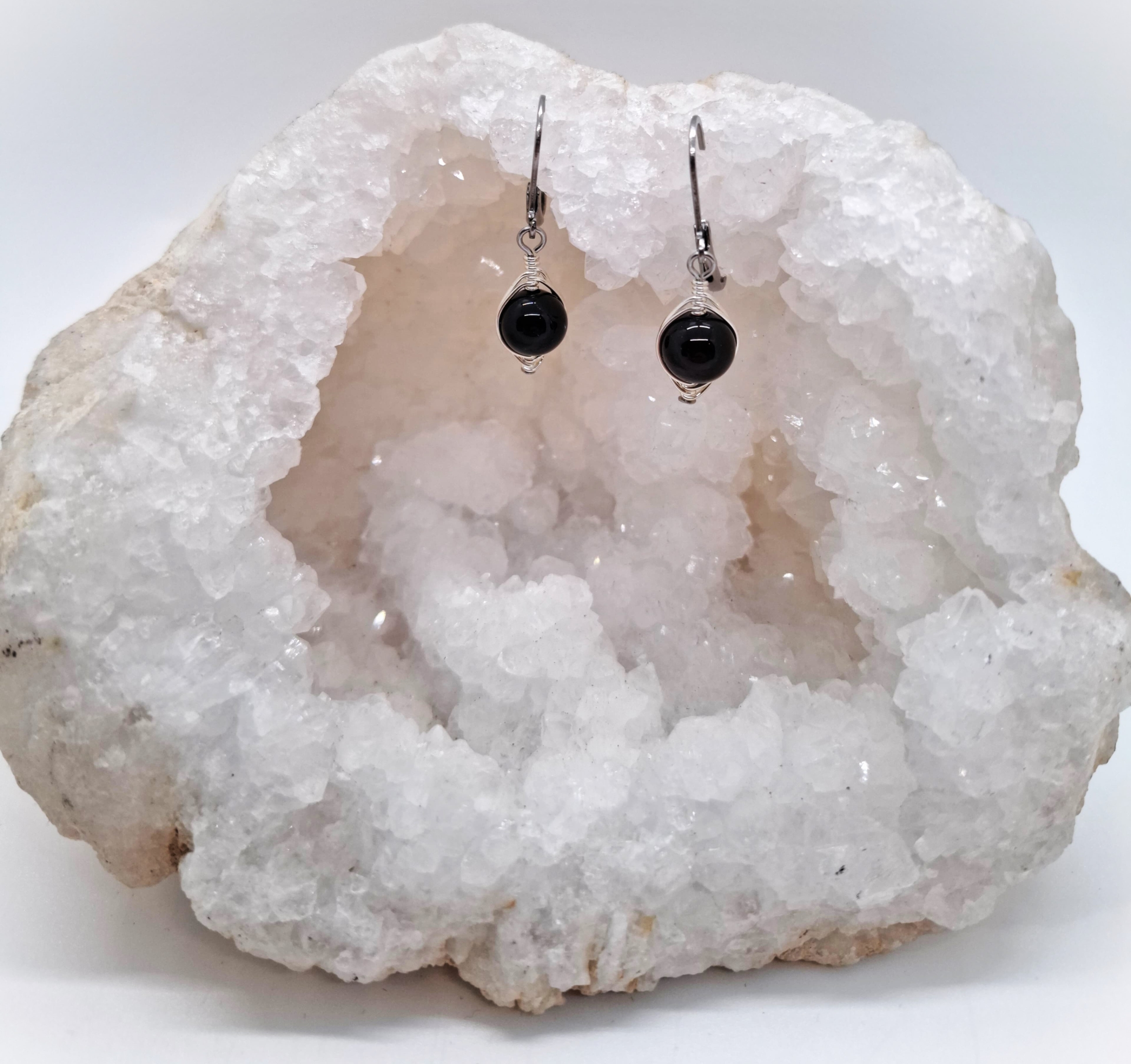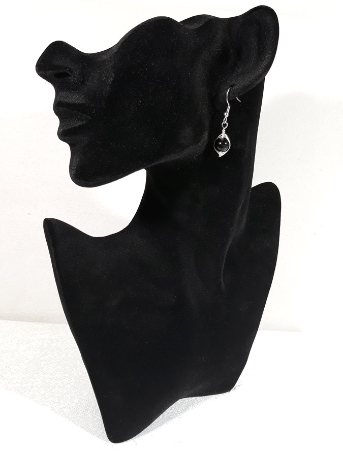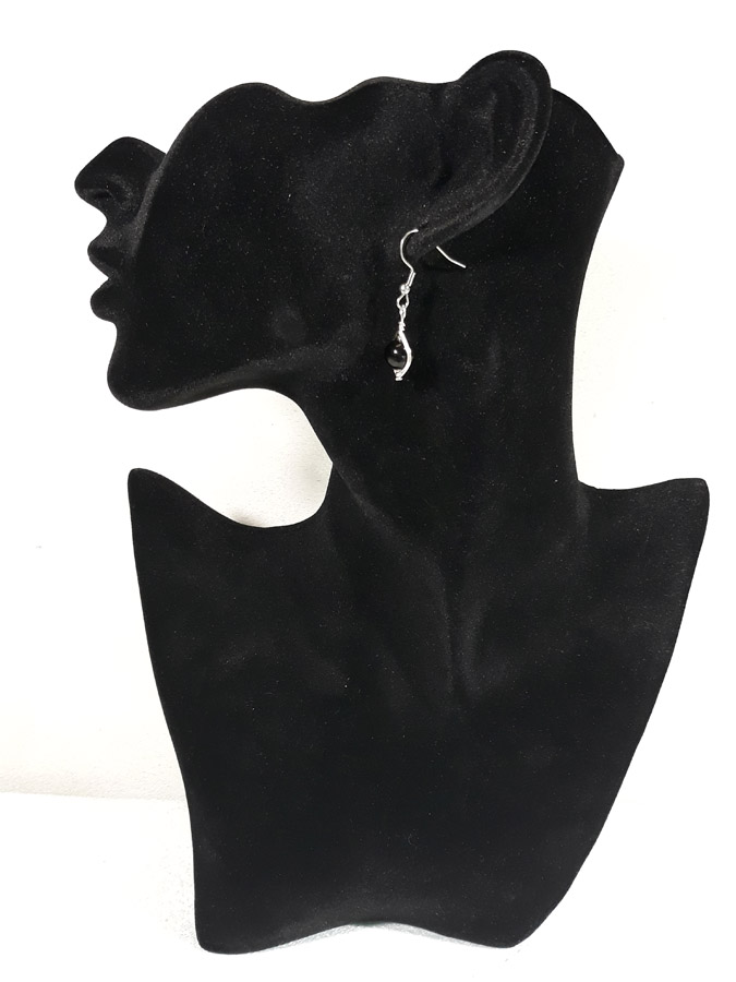 Opis: Ručno izrađene posrebrene naušnice galvanizirane srebrom sa oniksom veličine kamena 0,8cm i udicom od nehrđajućeg čelika.