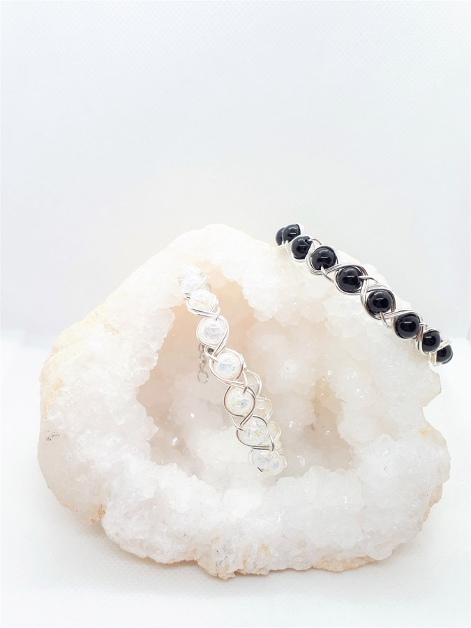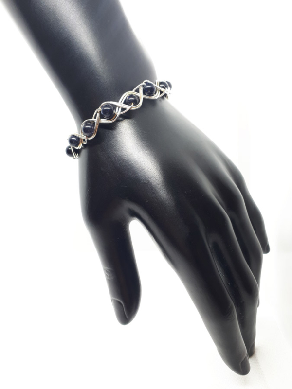 Ručno izrađena posrebrena narukvica galvanizirana srebrom sa oniksom.