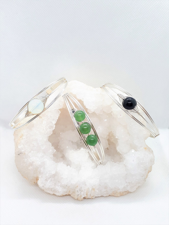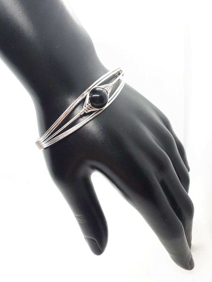 Ručno izrađena posrebrena narukvica galvanizirana srebrom sa oniksom.