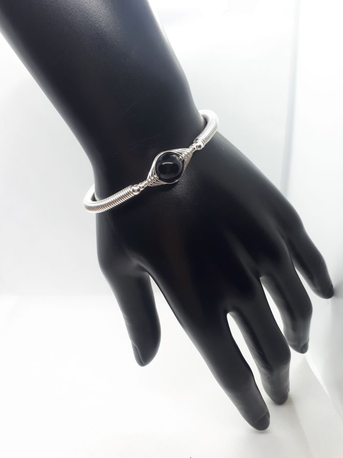 Ručno izrađena posrebrena narukvica galvanizirana srebrom s oniksom.