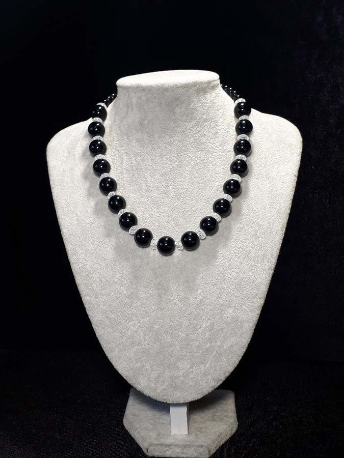Ogrlica je 45cm dugačka sa detaljima nehrđajućeg čelika;