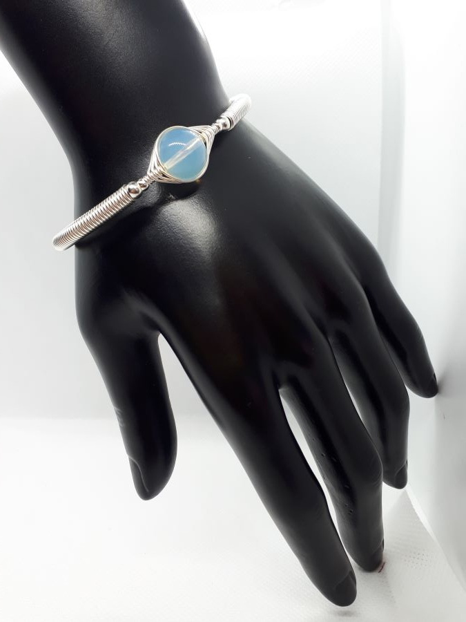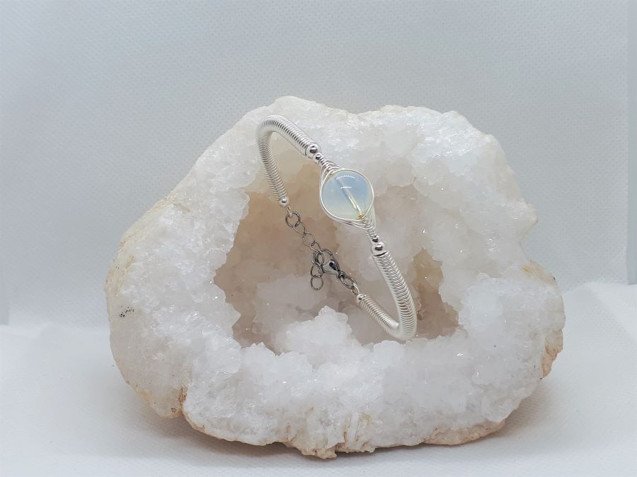 Ručno izrađena posrebrena narukvica galvanizirana srebrom s opalitom.