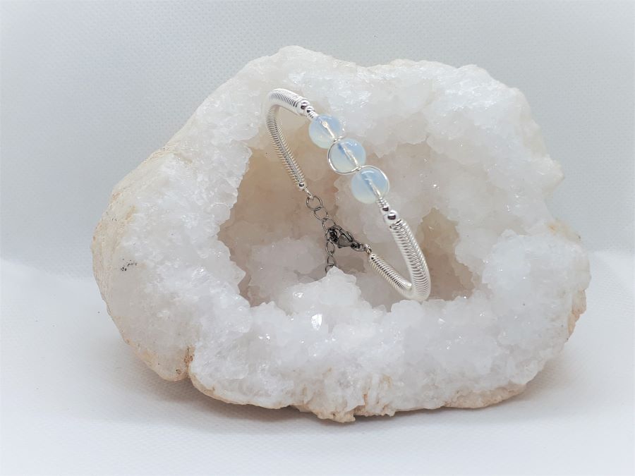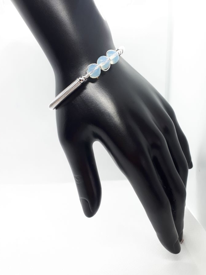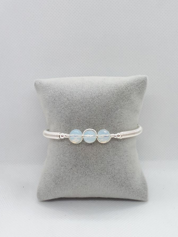Ručno izrađena posrebrena narukvica galvanizirana srebrom s opalitom.
