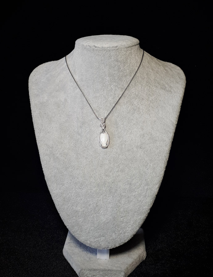 Opal veličine 3,2×1,0cm pleten srebrnom žicom