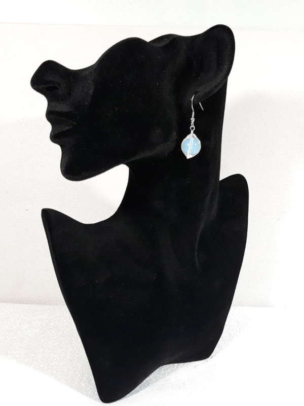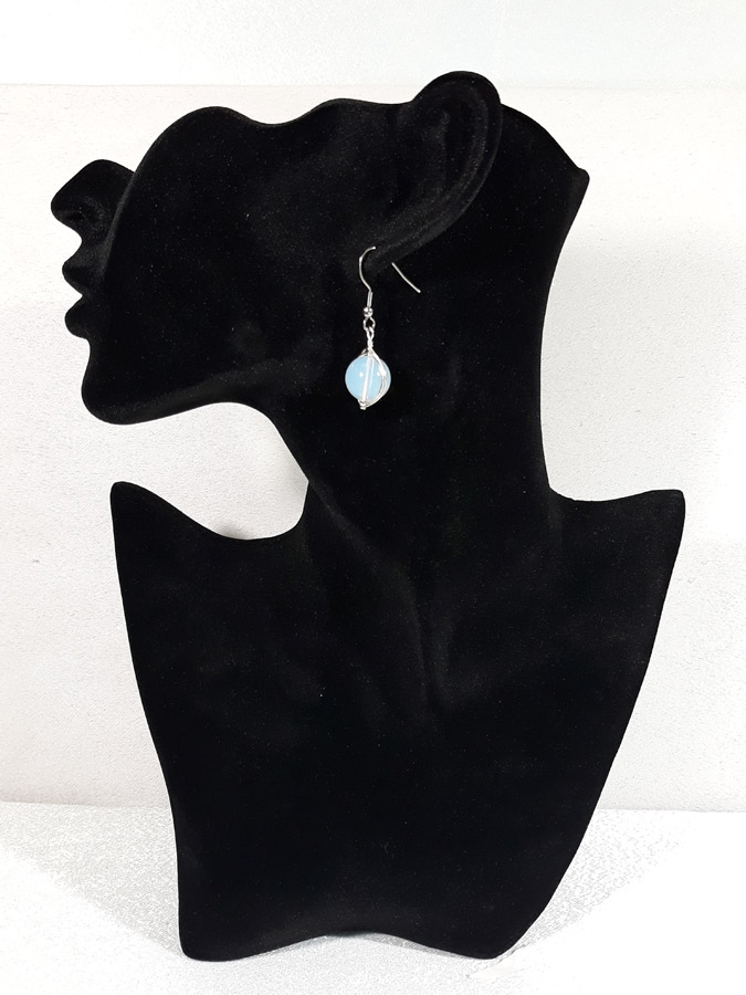 Opis: Ručno izrađene posrebrene naušnice galvanizirane srebrom sa opalitom veličine kamena 1cm i udicom od nehrđajućeg čelika.