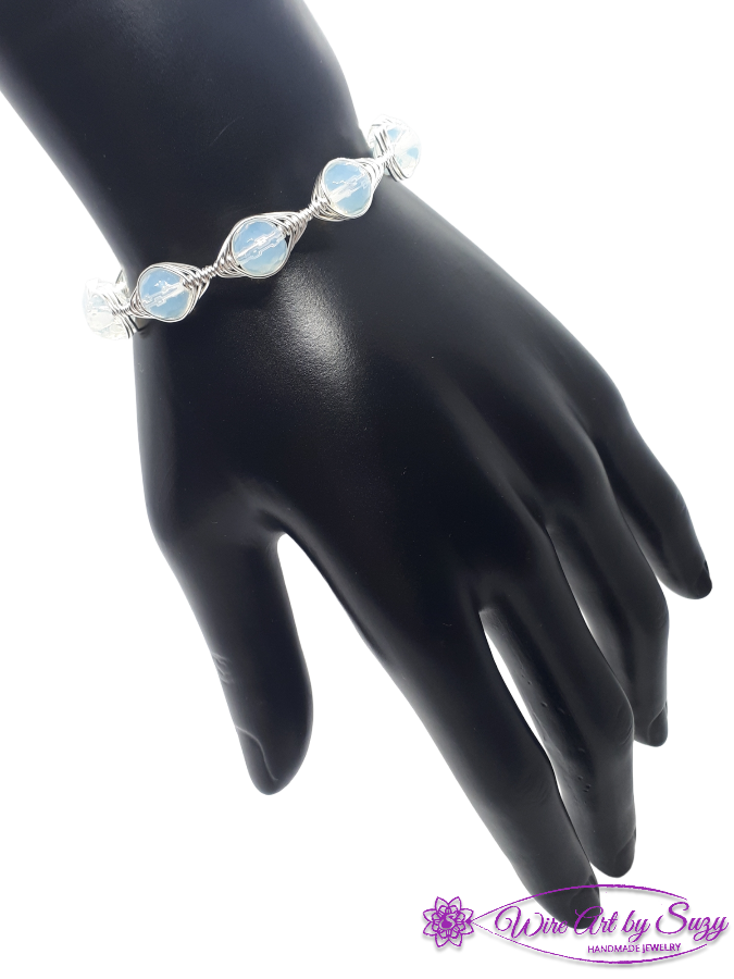 Ručno izrađena posrebrena narukvica galvanizirana srebrom s opalitom.
