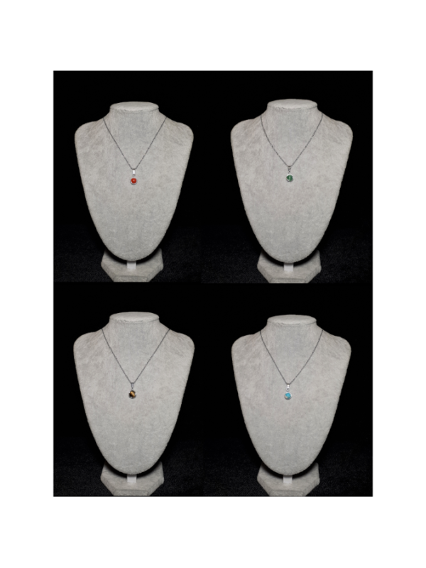 Ručno izrađeni privjesci galvanizirani srebrom sa raznim poludragim kamenjem i ogrlica od nehrđajućeg čelika. Za pregled svih vrsta i kombinacija odaberite opciju iz padajućeg izbornika. Također potražite naušnice za predivan komplet.