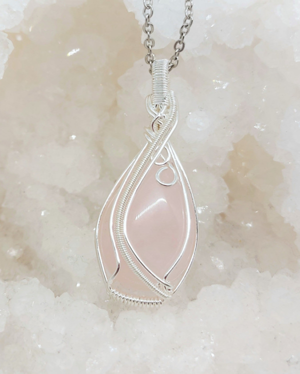 Jedinstveni rozenkvarc veličine 5,0×2,0 cm unikatno ukrašen žicom