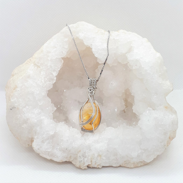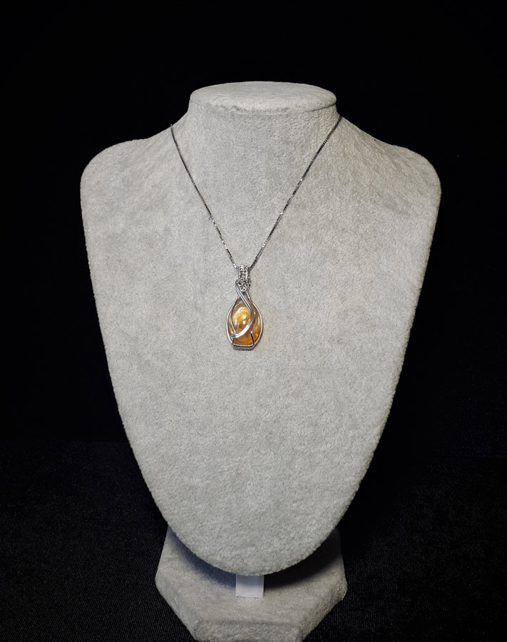 Topaz veličine 3,8×1,8 cm pleten srebrnom žicom