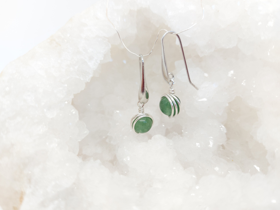Ručno izrađene srebrne naušnice sa poludragim kamenom veličine 1,0cm.